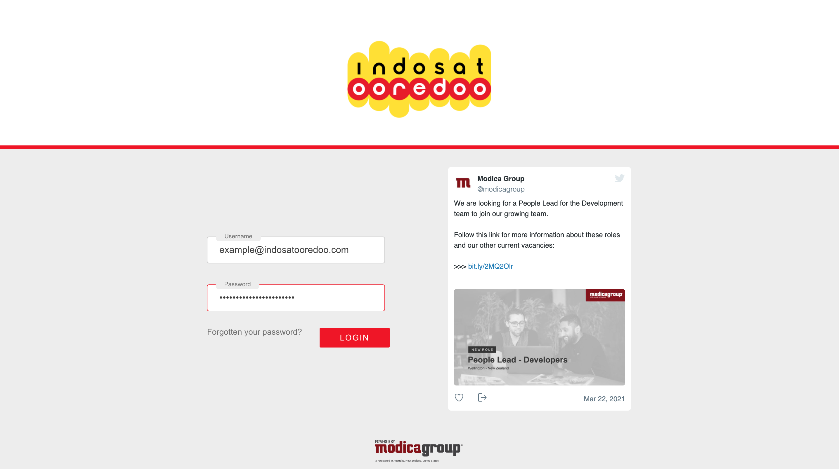 | You can log into iAdsBiz by going to this URL : https://indosatooredoo.modicagroup.com/ | ![]() |
