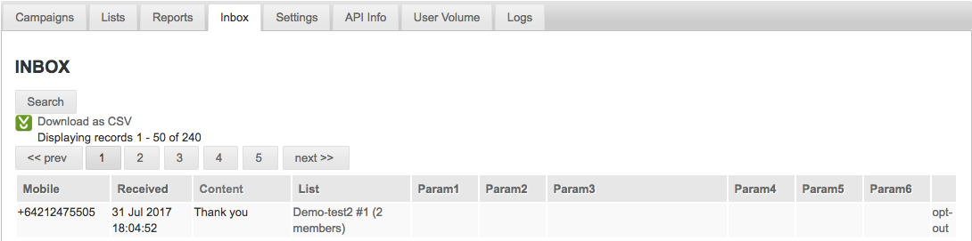 Klik tombol “ Opt-out ” pada baris yang sama dengan penerima yang ingin Anda pilih untuk tidak menerima pesan lebih lanjut dari Anda.