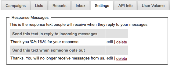Ada pesan Respons Default di halaman Setting yang akan memberikan respons umum untuk Opt in jika respons spesifik kata kunci dan respons spesifik daftar belum ditetapkan