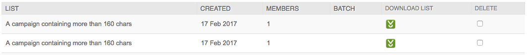 Kampanye (berdasarkan waktu mulai yang bertambah) akan tetap muncul di tab Campaign. Setelah ini disimpan, file CSV Anda akan disetel dalam daftar dan kampanye terpisah berdasarkan setelan yang baru saja Anda pilih. Daftar (Split) akan muncul di tab “Lists”. Kampanye akan tetap muncul di tab “Campaign”.