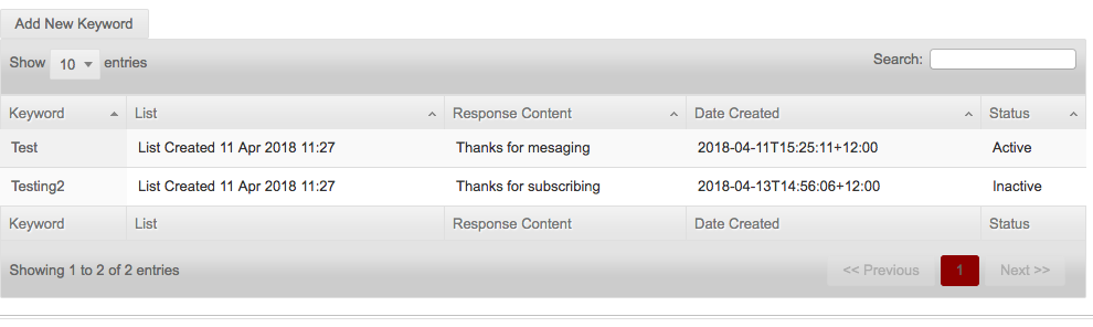 Setelah Anda menyimpan, Anda akan dibawa kembali ke halaman Kata Kunci utama dan akan terlihat seperti di bawah ini: