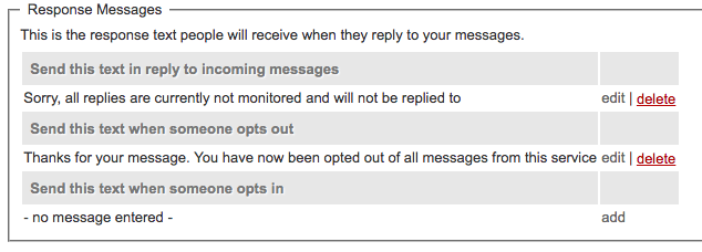 Pesan tanggapan/respon adalah apa yang akan dikirim jika ponsel ditambahkan ke daftar itu
