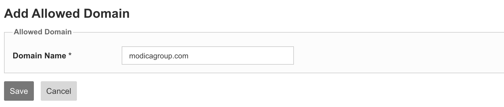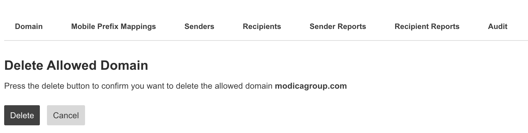 Dengan domain yang diizinkan, Anda dapat membatasi pengguna yang diizinkan untuk mengirim pesan melalui Email2SMS dengan menentukan domain dari mana alamat email pengirim harus dikirim. Misalnya, memasukkan domain modicagroup.com memastikan bahwa hanya pengguna yang alamat emailnya dalam format name@modicagroup.com yang dapat mengirim pesan di Email2SMS.