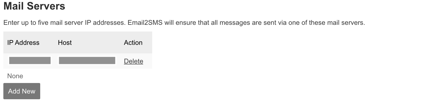 Email2SMS memungkinkan Anda memasukkan hingga lima (5) alamat IP server email atau nama host. Email2SMS akan memastikan bahwa semua pesan dikirim melalui salah satu server email ini. Ini adalah tindakan pengamanan yang memastikan bahwa pihak eksternal tidak dapat mengirim pesan menggunakan aplikasi Email2SMS Anda.