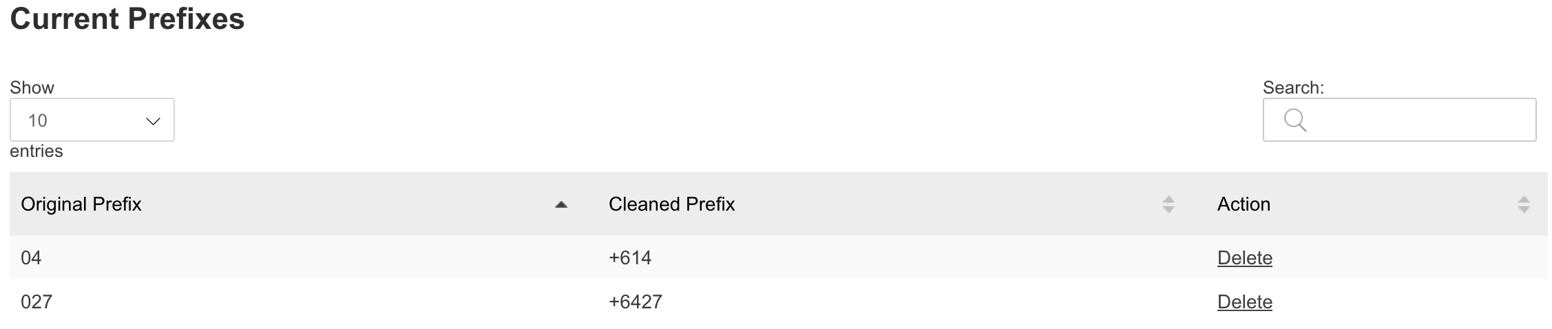 Pemetaan prefix memungkinkan Anda mengirim pesan tanpa menambahkan kode negara ke nomor ponsel. Misalnya, jika Anda menambahkan pemetaan prefix untuk menerjemahkan ‘04’ ke ‘+614’, Anda dapat mengirim pesan ke nomor ponsel yang dimulai dengan ‘04’ tanpa menambahkan kode negara.