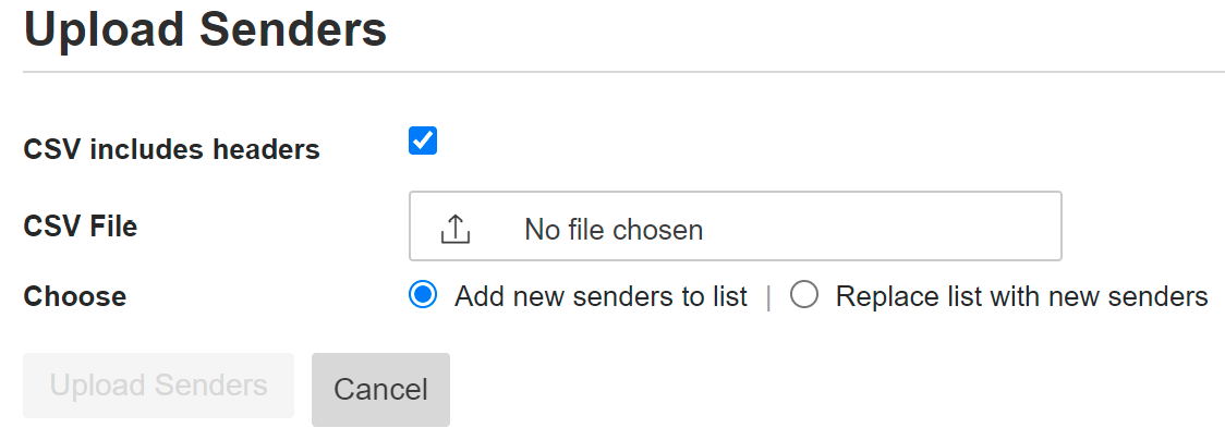 | Restrict senders Batasi pengirim | Jika kotak ini dicentang, pengguna hanya dapat mengirim pesan melalui Email2SMS jika dikonfigurasi sebagai pengirim yang diizinkan di tab Senders. Jika pengguna yang tidak dikonfigurasi sebagai pengirim mencoba mengirim pesan, itu akan gagal. Jika kotak tetap tidak dicentang, siapa pun yang menggunakan format domain Email2SMS Anda (yaitu nomor ponsel@domainanda2SMS) akan dapat mengirim pesan melalui instance Email2SMS Anda. |