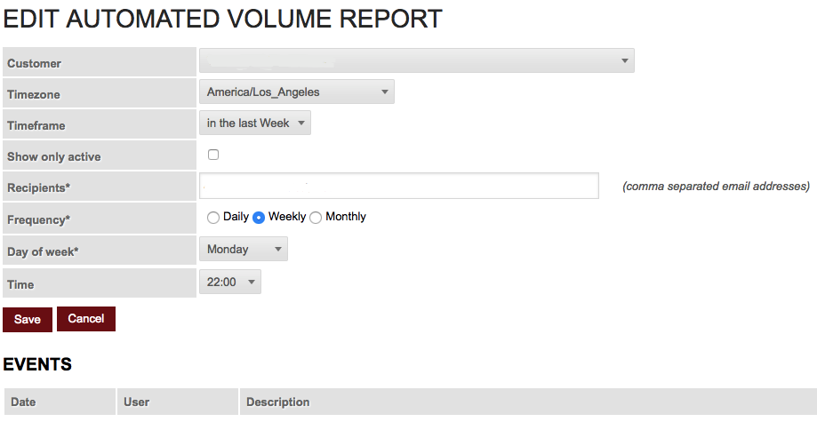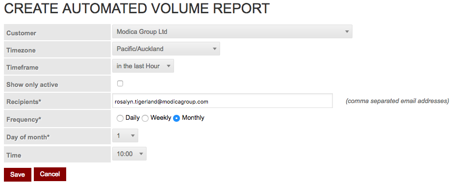 - Anda akan dibawa ke halaman di mana Anda dapat membuat Laporan Volume Otomatis baru dengan memilih dari drop-down.