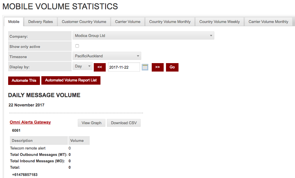 Laporan Aplikasi OtomatisLaporan Omni Analytics ini menunjukkan volume agregat berdasarkan gerbang / kode pendek / operator